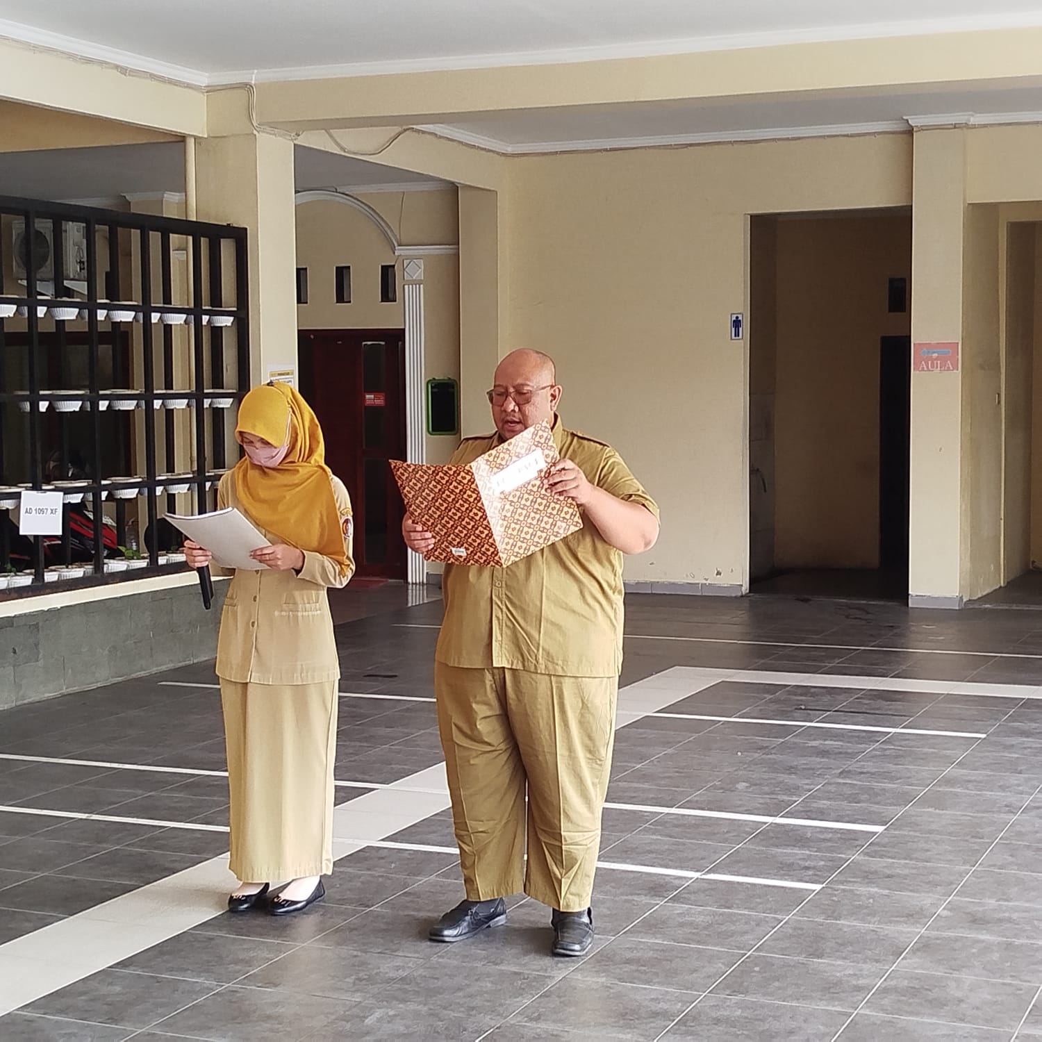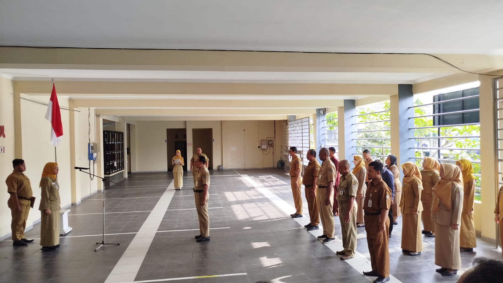 Apel pagi Badan Kesatuan Bangsa dan Politik (Bakesbangpol) Kabupaten Karanganyar pada Hari Senin Tanggal 06 Oktober 2025. Bertindak sebagai Pembina Apel Pagi yaitu Sekretaris Badan Kesbangpol, Ibu Tyas Ngambar Widyowati, S.H. Apel Pagi diawali dengan pembacaan Teks Pancasila yang dipimpin oleh Pembina Apel dan ditirukan seluruh Peserta Apel Pagi. Setelah pembacaan Teks Pancasila, prosesi dilanjutkan dengan amanat dari Pembina Apel Pagi. Dalam amanat, Pembina Apel Pagi menyampaikan kepada para peserta apel untuk menyesuaikan diri dengan adanya pergeseran kepemimpinan Bakesbangpol. Terhitung Selasa, 31 September 2025 merupakan berakhirnya masa tugas sebagai Pelaksana Tugas (Plt.) Kepala Bakesbangpol oleh Bapak Bambang Djatmiko, S.Sos., M.Si. Selanjutnya, terhitung mulai Rabu, 01 Oktober 2025 sampai dengan 31 Desember 2025 atau sampai dilantiknya Pejabat Kepala Bakesbangpol telah ditunjuk pelaksana tugas baru. Bupati Karanganyar, Bapak H. Rober Christanto, S.E., M.M. menunjuk Pelaksana Tugas (Plt.) Kepala Bakesbangpol yaitu Bapak Dwi Cahyono, S.Sos., M.Si. yang merupakan Pejabat Kepala Badan Perancanaan, Penelitian, dan Pengembangan Kabupaten Karanganyar. Dengan adanya pergeseran kepemimpinan tersebut, seluruh Karyawan dan Karyawati Bakesbangpol diminta untuk menyesuaikan diri berkaitan dengan pengadministrasian dokumen kedinasan dan kepegawaian.