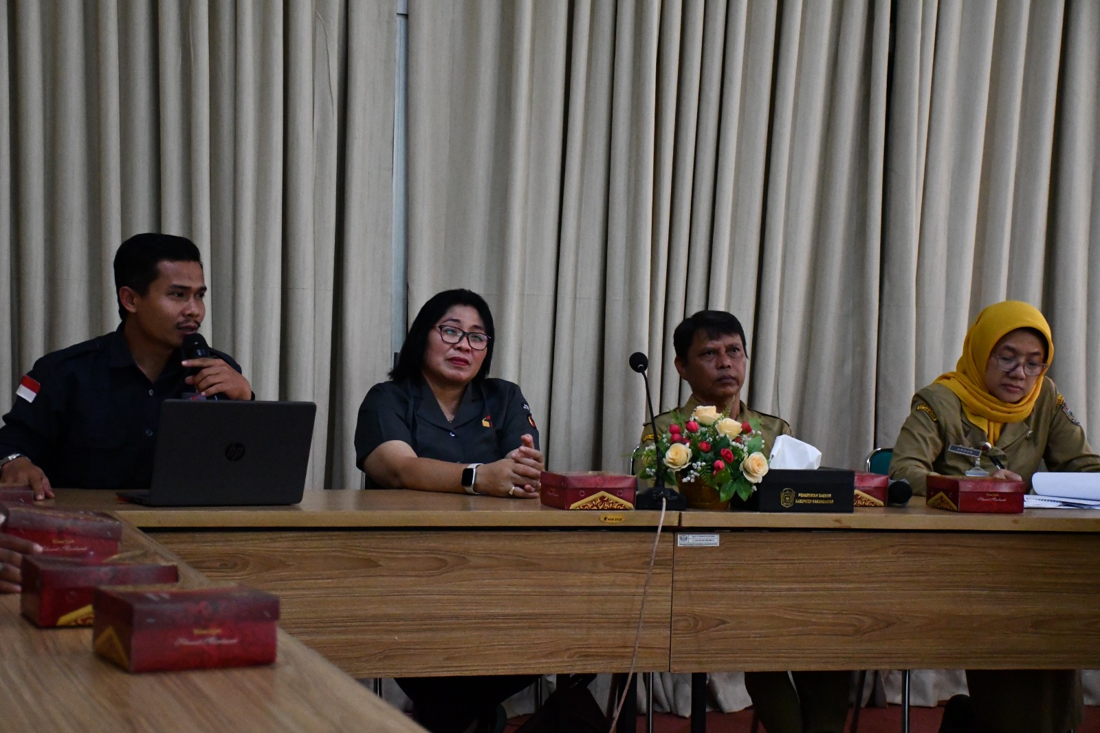 Badan Kesatuan Bangsa dan Politik Kabupaten Karanganyar menghadiri kegiatan audiensi dengan Badan Pengawas Pemilihan Umum (BAWASLU) Kabupaten Karanganyar dalam rangka memperkuat sinergitas implementasi produk hukum terkait penertiban alat peraga kampanye. Kegiatan tersebut dilaksanakan pada Senin, 19 Januari 2026, bertempat di Ruang Derkuku, Kantor Sekretariat Daerah Kabupaten Karanganyar. Bakesbangpol diwakili oleh Sekretaris Badan, Ibu Tyas Ngambar Widyowati, S.H., serta Kepala Bidang Politik Dalam Negeri dan Organisasi Kemasyarakatan, Bapak Eka Mardiyanta, S.Sos., M.Si.