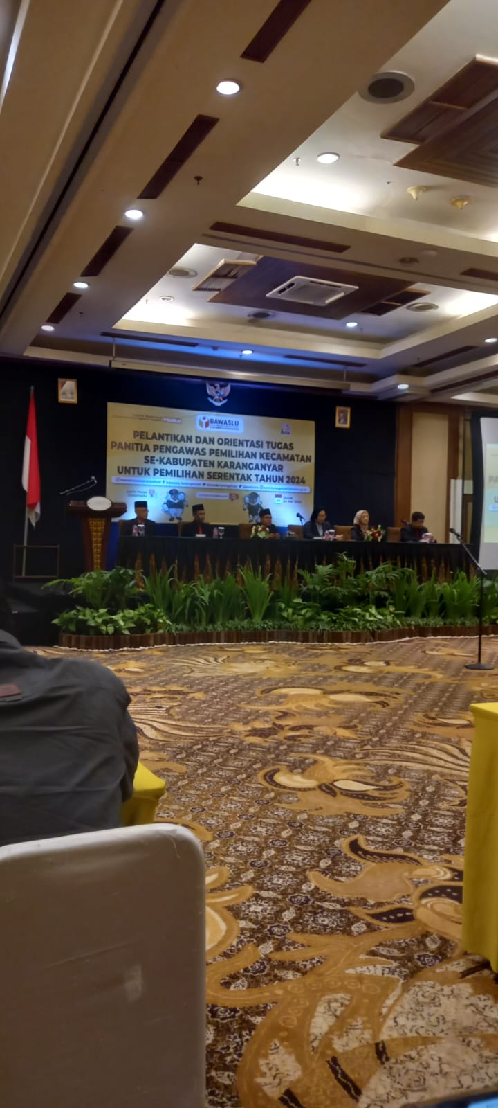 Kegiatan pelantikan anggota Panwas Kecamatan pemilihan serentak tahun 2024 Kabupaten KaranganyarP pada Hari Jumat tanggal 24 Mei 2024 bertempat di LORIN Solo Hotel Karanganyar. Pelantikan ini dihadiri oleh :