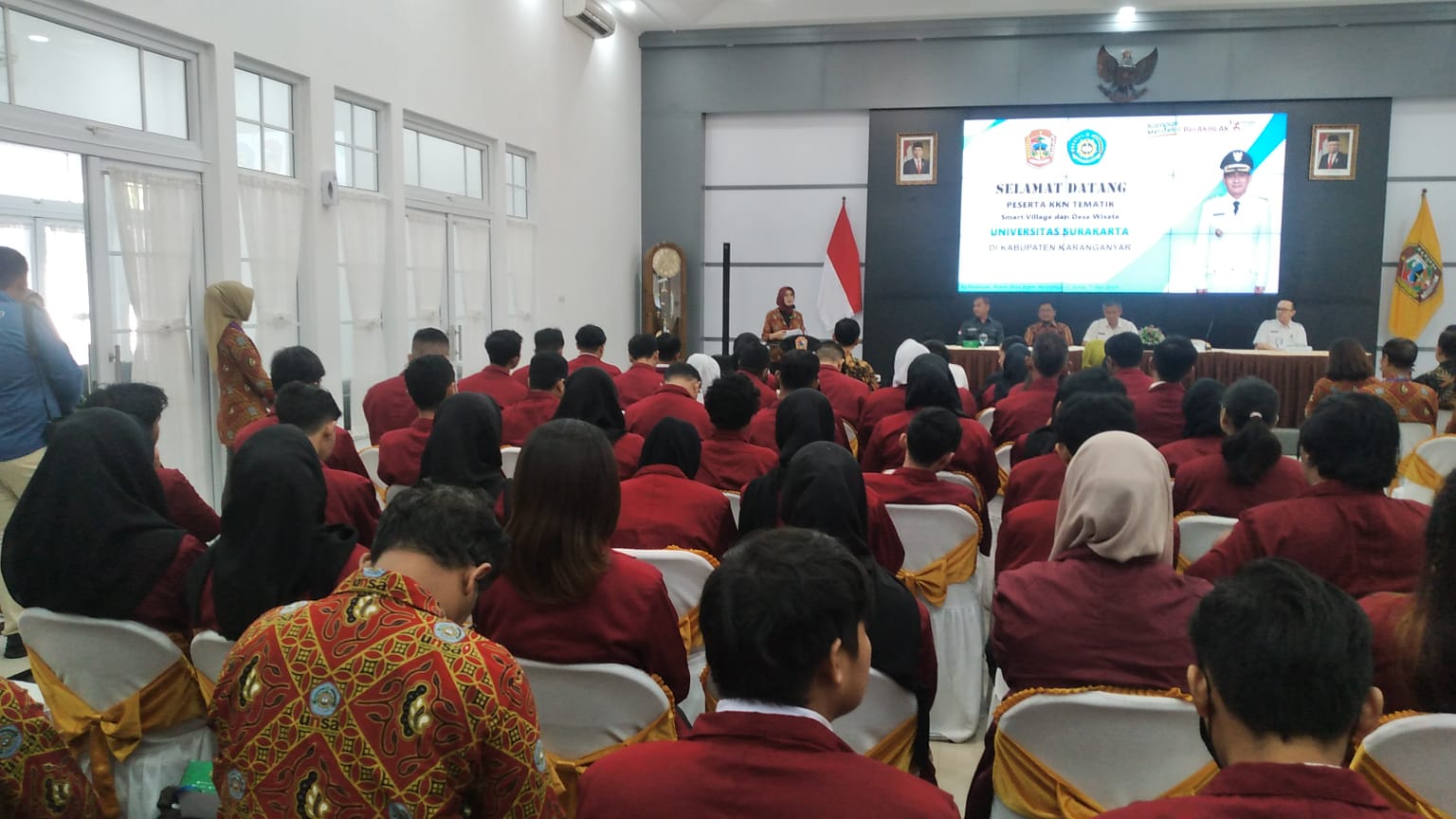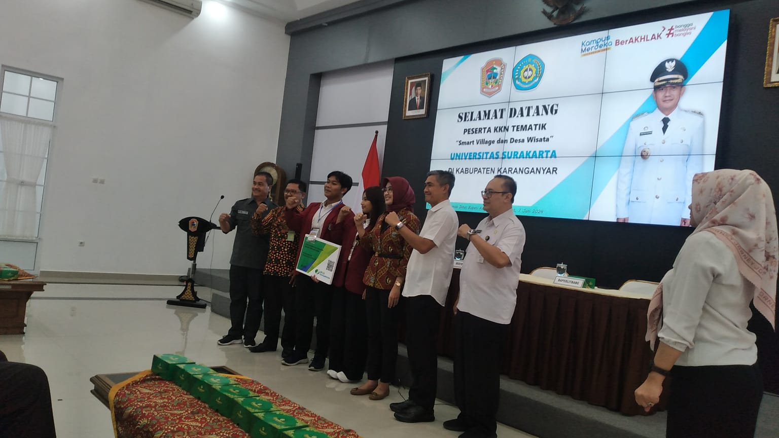 Mengikuti Penerimaan mahasiswa KKN Tematik Unsa Surakarta di ruang Anthorium rumah Dinas Bupati Karanganyar tanggal 7 juni 2024