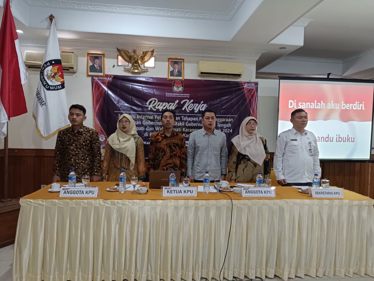 Raker Evaluasi Internal Pelaksanaan Tahapan Penyelenggaraan Pemilihan Gubernur & Wakil Gubernur Jawa Tengah serta Bupati & Wakil Bupati Karanganyar Tahun 2024 pada Hari Senin, 10 Februari 2025 di Hotel Tamansari, Kabupaten Karanganyar.