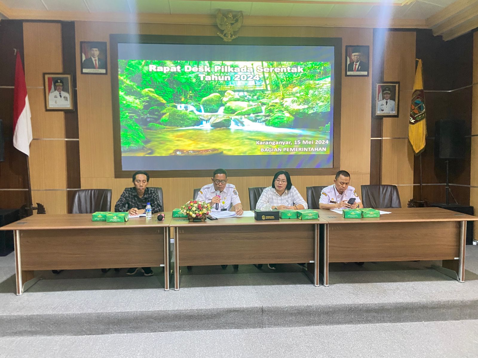 Pada hari Rabu tanggal 15 Mei 2024 pukul 13.20 s.d 14.15 WIB di ruang podang 1 Setda kab. Karanganyar alamat Komplek Perkantoran,Kel. Cangakan, Kec/Kab. Karanganyar, telah dilaksanakan kegiatan rapat desk Pilkada serentak Kabupaten Karanganyar Tahun 2024 yang diikuti lk 25 orang.