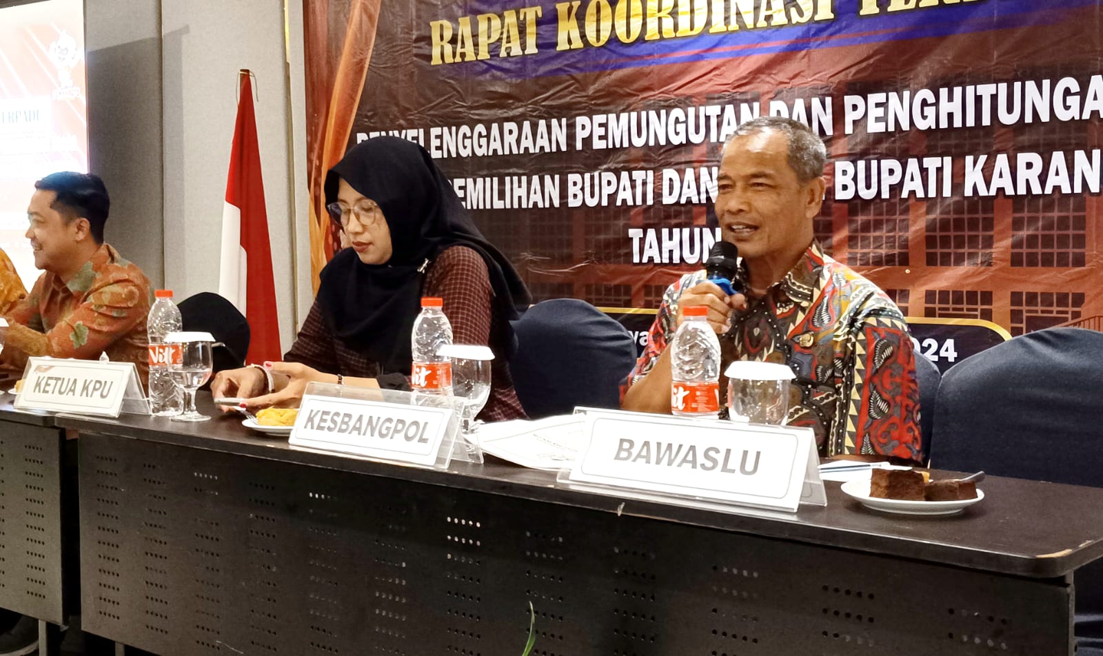 Pada Hari Selasa, 19 November 2024 telah dilaksanakan Kegiatan Rapat Koordinasi Terpadu Menjelang Hari Pemungutan Suara dalam Pemilihan Bupati dan Wakil Bupati Kabupaten Karanganyar Tahun 2024 bertempat di Facade Hotel Tawangmangu, Kabupaten Karanganyar.