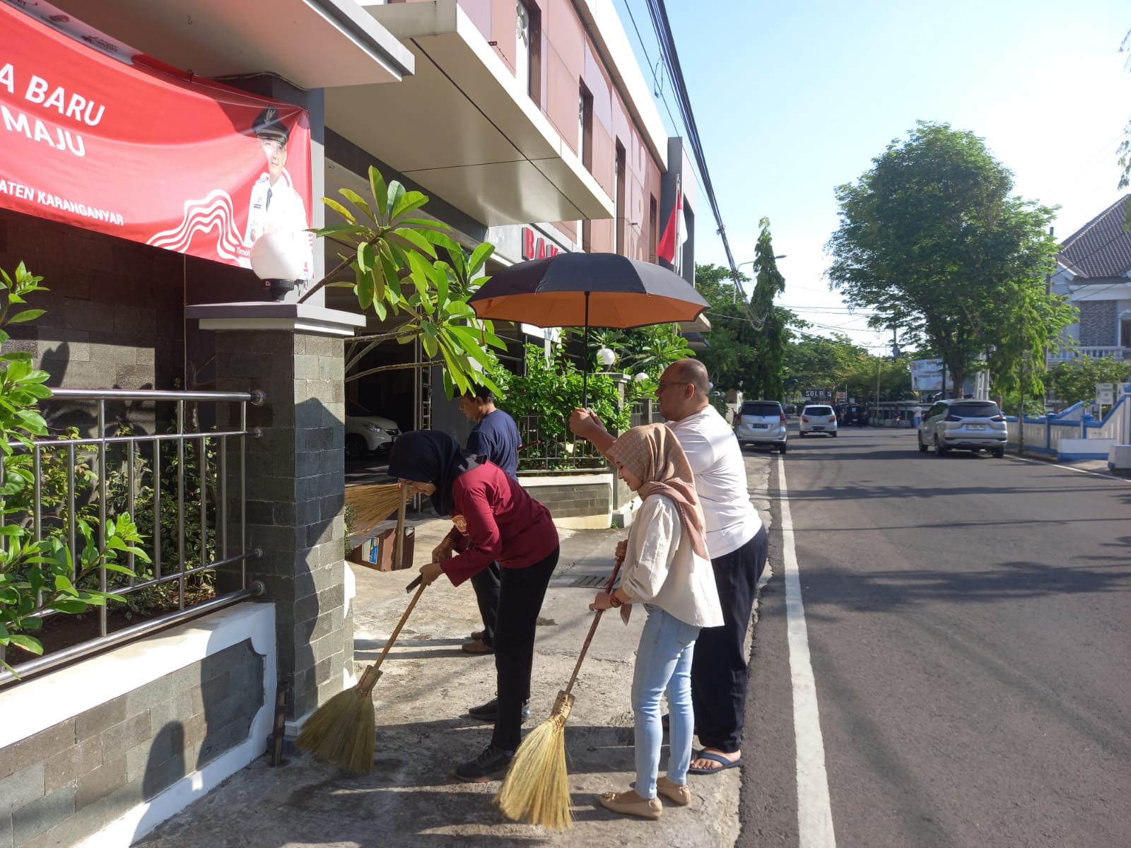 Karyawan dan Karyawati Badan Kesatuan Bangsa dan Politik Kabupaten Karanganyar Mengikuti World Cleanup Day 2024 untuk Memperingati Hari Bersih-Bersih Sedunia.